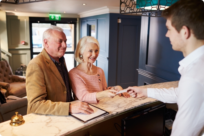 Wydrukuj Voucher i przedstaw w hotelu.Wydrukuj pobrany Voucher Hotelowy w PDF i przedstaw go w recepcji hotelu w dniu przyjazdu. Zostaniesz zwolniony z opłat za noclegi za cały okres pobytu wraz z osobą towarzyszącą.